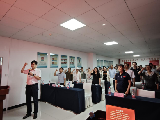 在龙凤山爱国主义教育基地会议室,查文良带领全体党员干部重温入党誓词、讲述党费小故事并作重要讲话。
