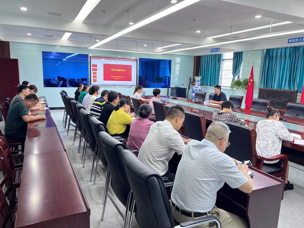 (通讯员 罗彦熙)为进一步增强干部廉政意识,根据《党政领导干部选拔任用工作条例》有关规定,8月26日上午,医院召开新提拔干部集体廉政谈话。受医院党委委托,院党委副书记张欢主持并讲话,党群部门负责人以及履新干部参加了会议,党政办公室主任余静萍宣读了干部任免文件。