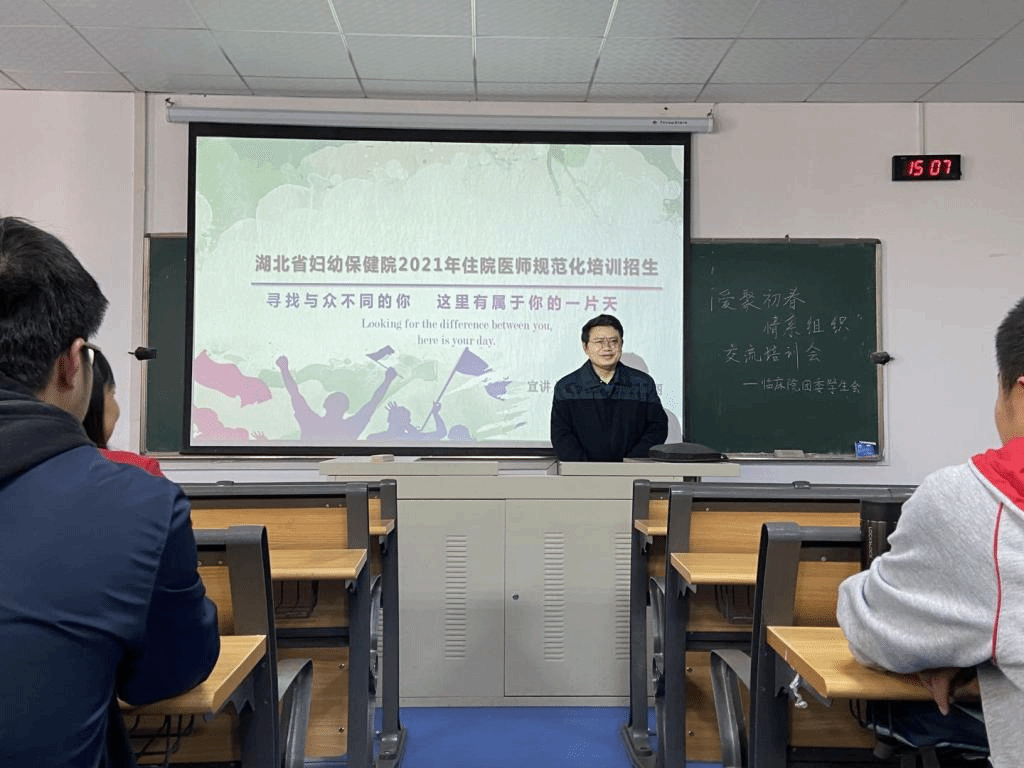 观众就坐后,首先由杨星海院长向各位同学详细讲解了2021年住院规范化培训的内容,并详细地介绍了湖北省妇幼保健院的创办历史与工作环境。最后表示十分欢迎各位同学报名参加2021年湖北妇幼保健院医师规范化培训。
