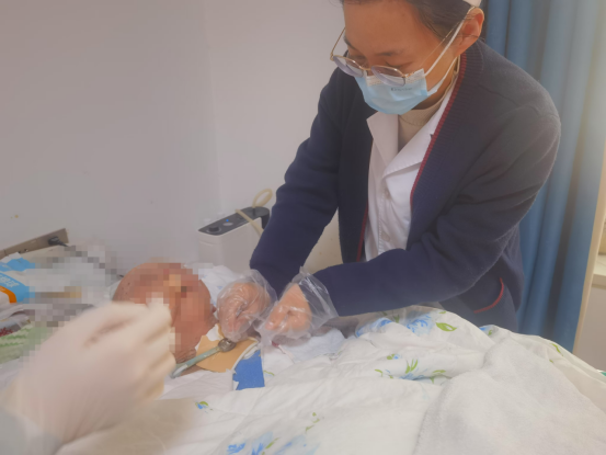 春节将至,在这阖家团圆的喜庆时刻,内二科护士长邱琴带着科内护理骨干主动上门,一同上门为患者进行胃管、气管导管的护理。