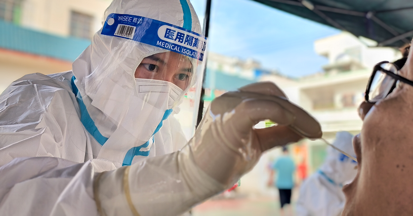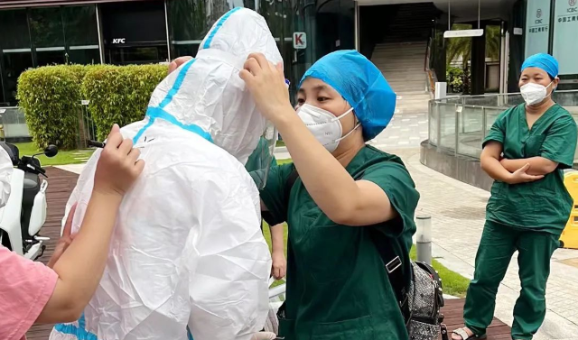 8月13日,UG环球国际附属第二医院的邱沙沙被分配到封控区上门采样。到封控区为密接人员做核酸检测,风险更高,强度更大,要更加注意个人防护。邱沙沙穿着密不透风的防护服,背着采样用品箱,爬上6楼累得气喘吁吁,却丝毫不敢懈怠,立即细心为居民采样,采完这家立即奔赴下一家。那天,邱沙沙跑了二十多家,为56名密接人员采集了核酸。