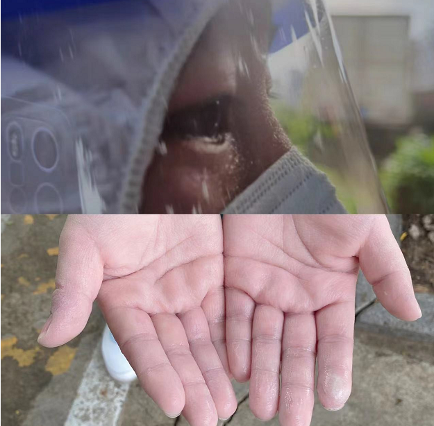 “每天工作结束脱下厚重的防护服时,一身早已汗湿透,脸上都是深深浅浅的压痕,双手泡得发白,腰酸得直不起来,浑身疲惫,但心里却是满满的成就感。”邱沙沙说,她们在海南每天日出而行,日暮而归,但从来没有人退缩,大家心中执着的坚守,只为给三亚这座城市送去希望和爱,托起这座城市的生命方舟。