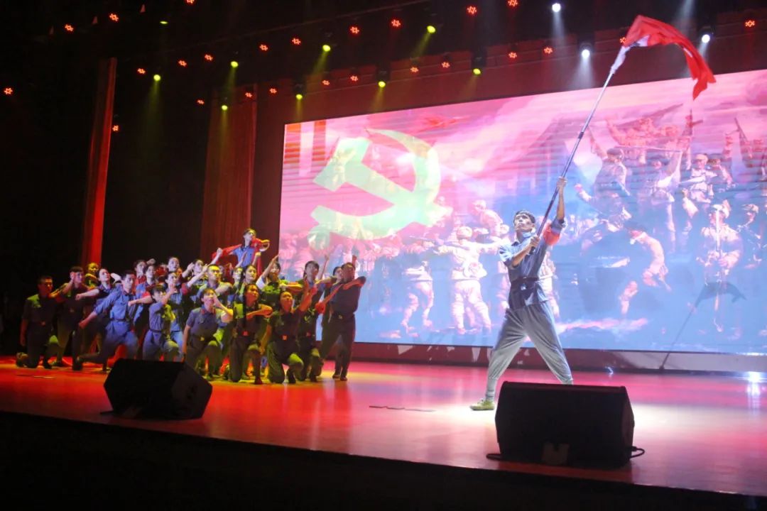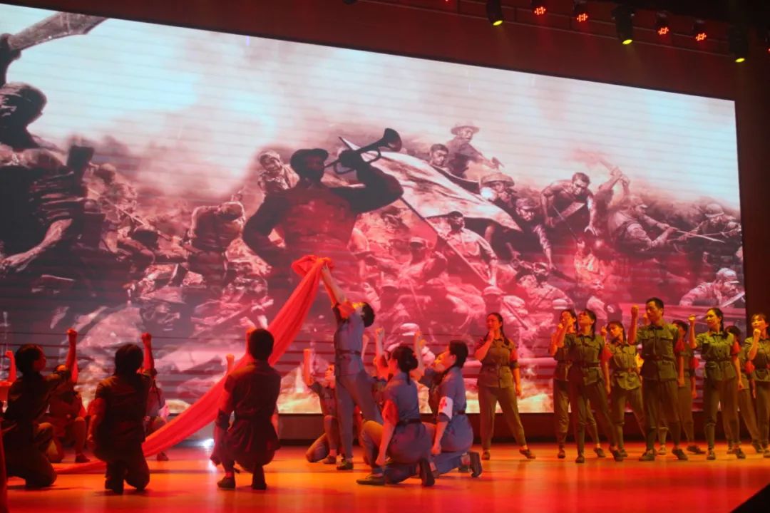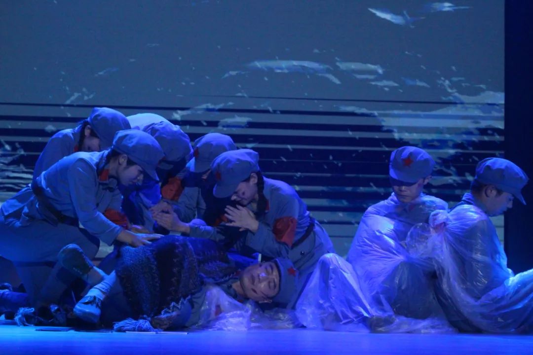 在第一篇章旗帜中,以纪录片和情景剧《翻越雪山》《穿越沼泽》相结合,以“体验式“情景党课的形式,把发生在长征途中的一个个感人至深的故事呈现在大家面前,生动演绎了长征精神,充分展现出红军战士不怕困难的坚强意志。