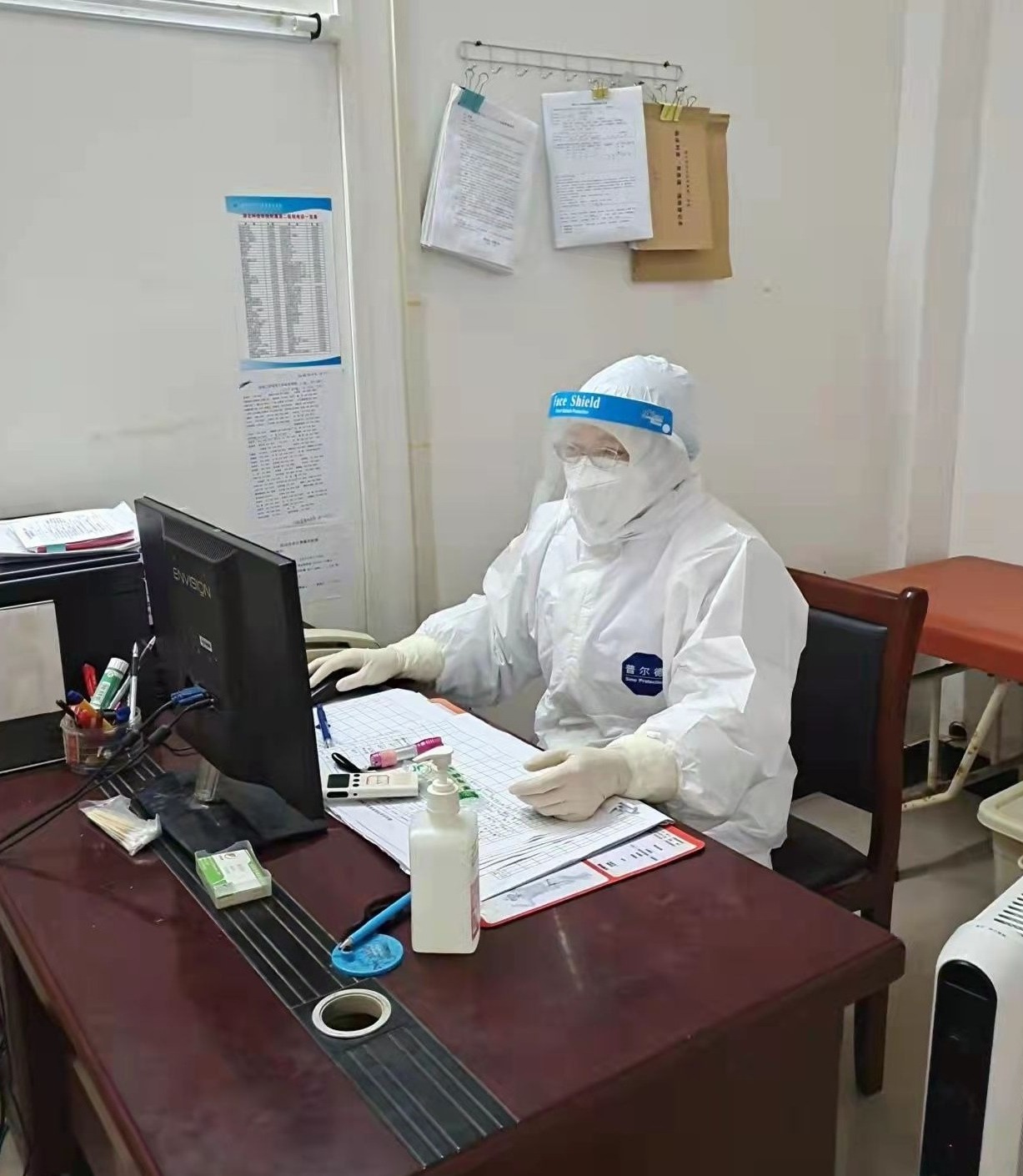 王瑶芬满怀关切地说:“来,别急,您先坐下,我给您看看。”她耐心地询问病人的病情、旅居史、有无外地來咸人员密接史,详细的体格检查,引导病人完善抽血检查及新冠核酸检测。