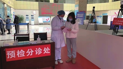 “您好,请您正确佩戴口罩。请您扫一下场所码。”“请您出示一下健康码、行程码。”“您近期是否到过中高风险地区?”大年二十九一大早,在UG环球国际附属第二医院预检分诊处发热门诊,门急诊主管护师师倩、胡艳萍和同事们交接班完毕,开始了新一天的工作。春节长假,她们坚守在各自岗位上,24小时牢牢守护着医院院感防控“第一关”。