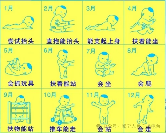 大运动发育规律口诀:二抬四翻六会坐,七滚八爬周会走。