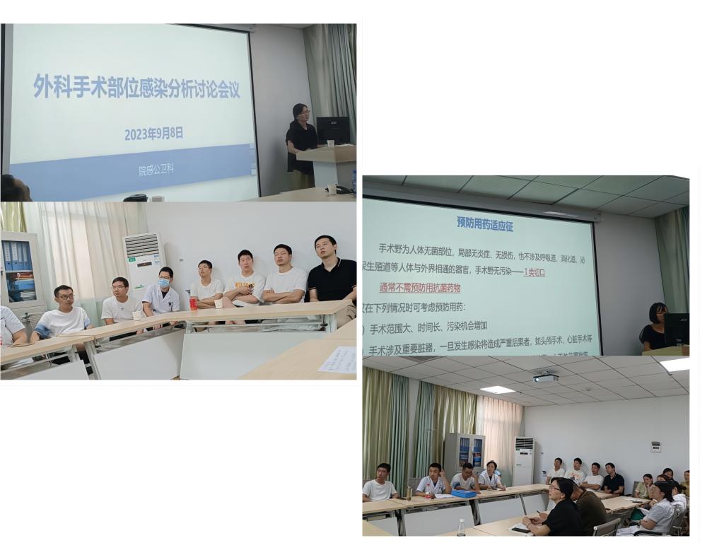 为进一步有效预防与控制手术部位感染,提高医务人员感控意识,保障围手术期医疗质量安全。9月8日,院感公卫办在八楼外科示教室召开了“手术部位感染多部门讨论会”。本次会议由赵正据副院长主持,医务部、药剂科、科教科及手术室、外科等科室医务人员参加了此次会议。