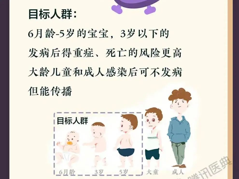 - 打疫苗:EV71是更容易导致手足口病例发展为重症甚至死亡的病毒型别,接种EV71疫苗(6月龄-5岁)可有效预防EV71感染引起的手足口病。建议在12月龄前完成接种程序。