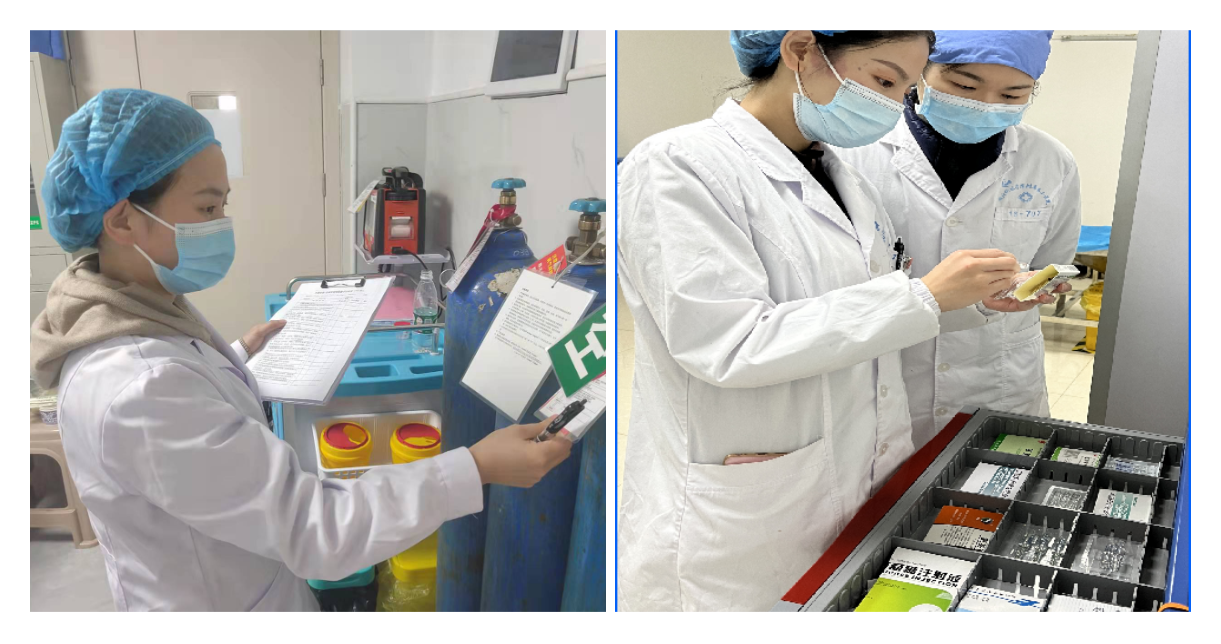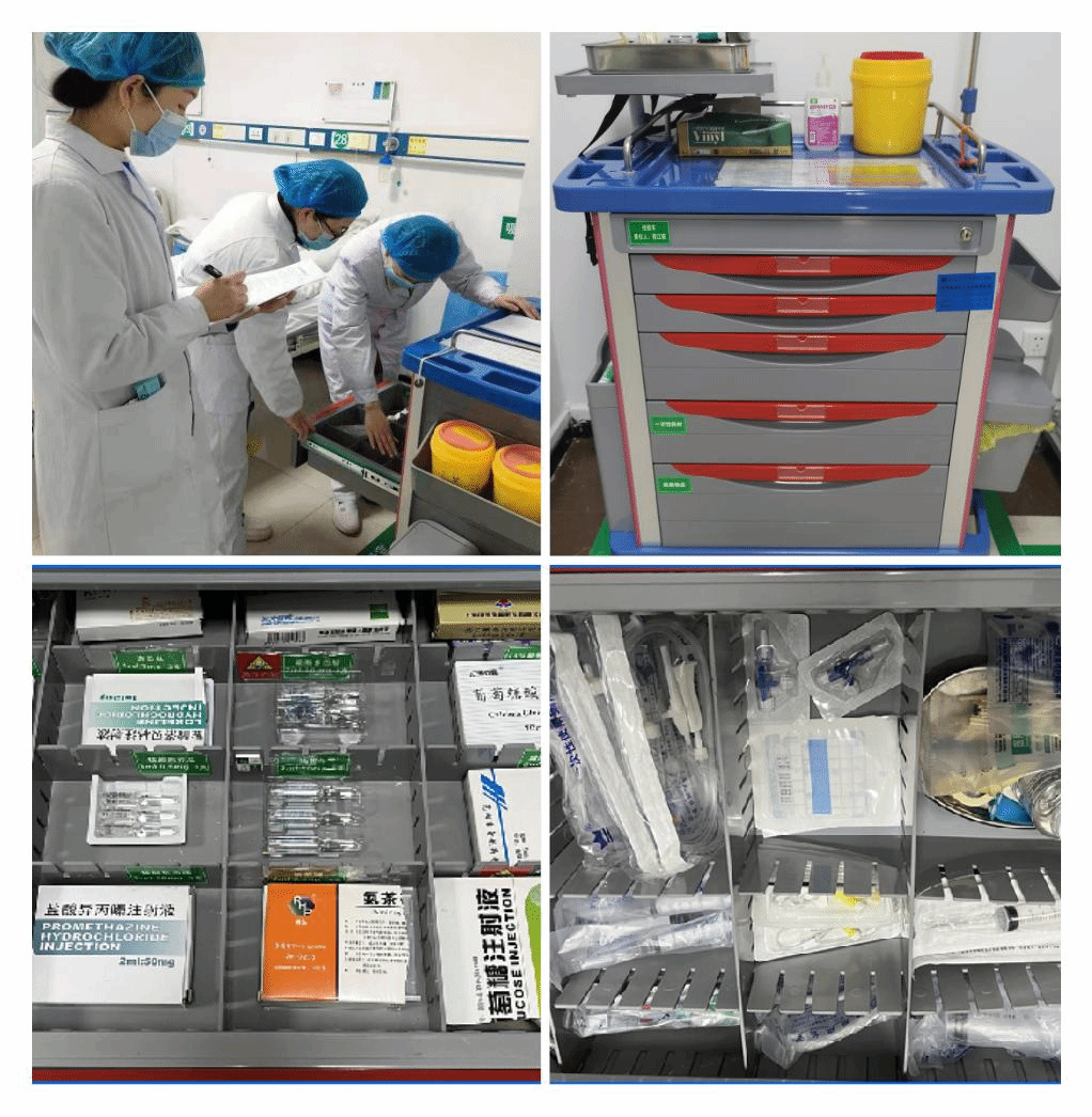 为了保证抢救质量,护理部将急救车内药品、物品的示意图等以书面形式发放到科室,使每位护理人员都熟知,为抢救患者赢得宝贵时间,提高抢救成功率。(审稿人 唐春花)