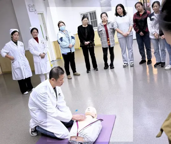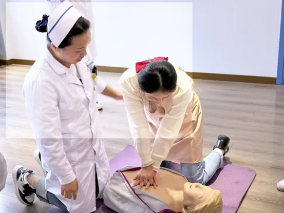情景四是心肺复苏术的实操培训,儿科主治医师夏自凤强调了心肺复苏的黄金4分钟,结合多年临床工作经验,对如何判断呼吸心跳骤停、心肺复苏操作步骤、救助过程中注意事项等进行了详细讲解,并借助模拟人进行了操作示范,现场反响热烈,纷纷展开实操,夏医生逐一指导,保育员们成功解锁了科学的急救姿势和手法。