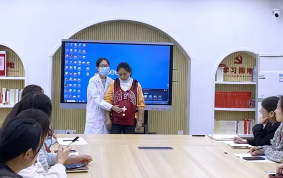 情景三是基于异物堵塞气管后的急救操作培训——海姆立克急救法,儿科医生殷茜茜介绍了海姆立克法的急救原理和操作要领,并结合模型现场演示了海姆立克急救法,展示了婴幼儿和年长儿急救手法的区别,保育员们积极参与实操,掌握了正确的急救手法。