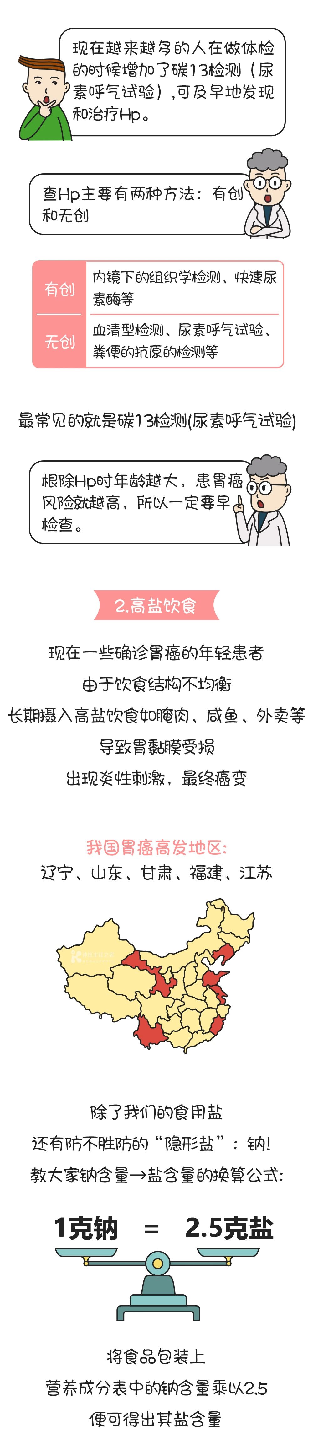 饮食结构不均衡,长期摄入高盐饮食,如腌肉、咸鱼、外卖等。导致胃黏膜受损,出现炎性刺激,最终癌变。