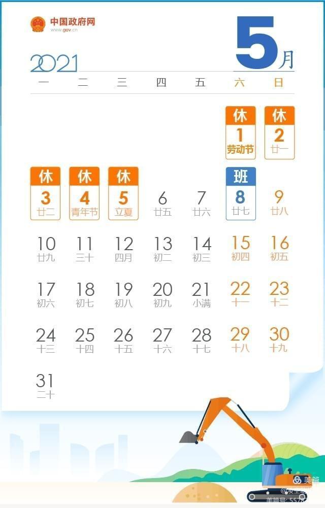 5月1日(周六)至5月5日(周三)放假